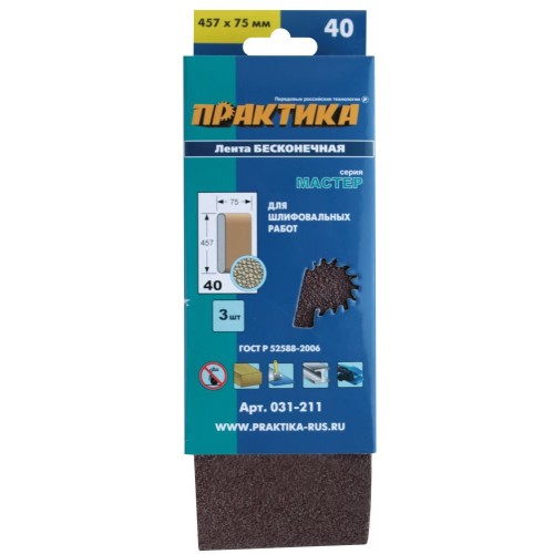 - Лента шлифовальная ПРАКТИКА 75 х 457 мм P40 (3шт.) картонный подвес