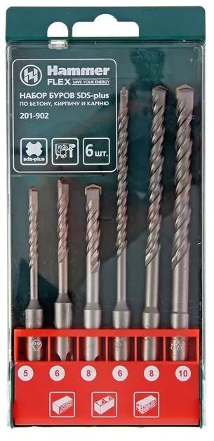 - Набор буров Hammer Flex 201-902 DR SDS+ набор No2 5/6/8 X 110, 6/8/10 X 160, 6шт.