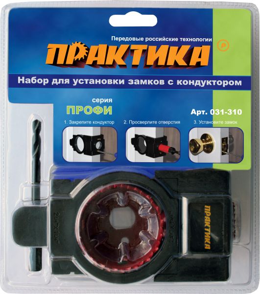 - Набор ПРАКТИКА для установки замков с кондуктором, коронка 25 мм, коронка 54 мм, блистер