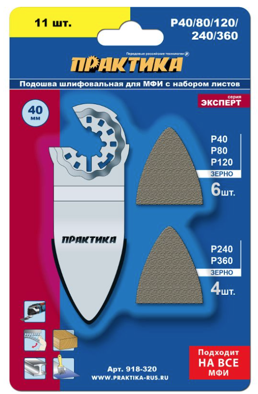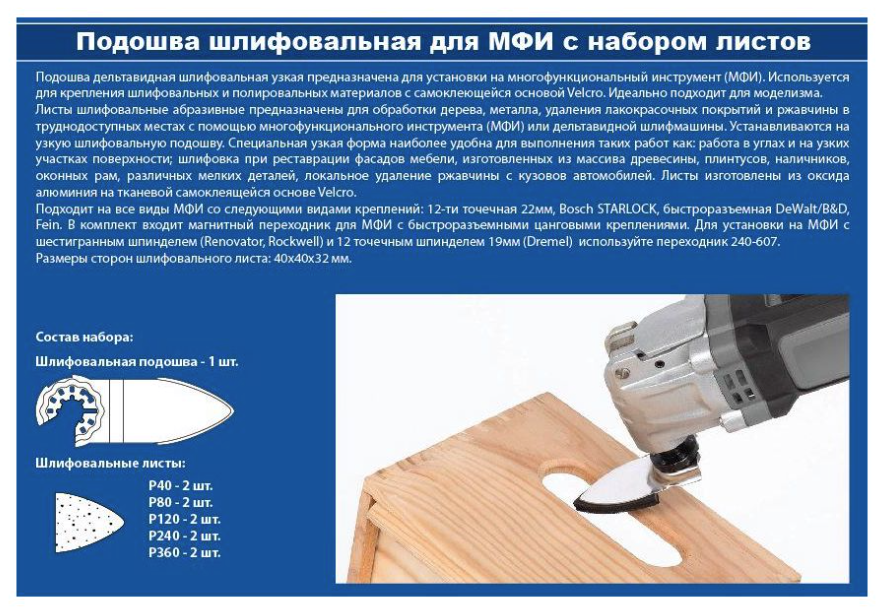 - Насадка для МФИ ПРАКТИКА подошва дельта узкая 35мм, VELCRO, с набором шлифлистов P40/80/120/240/360