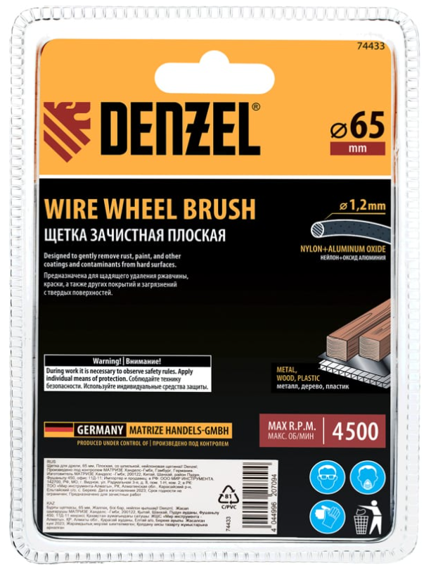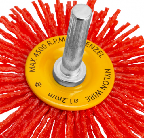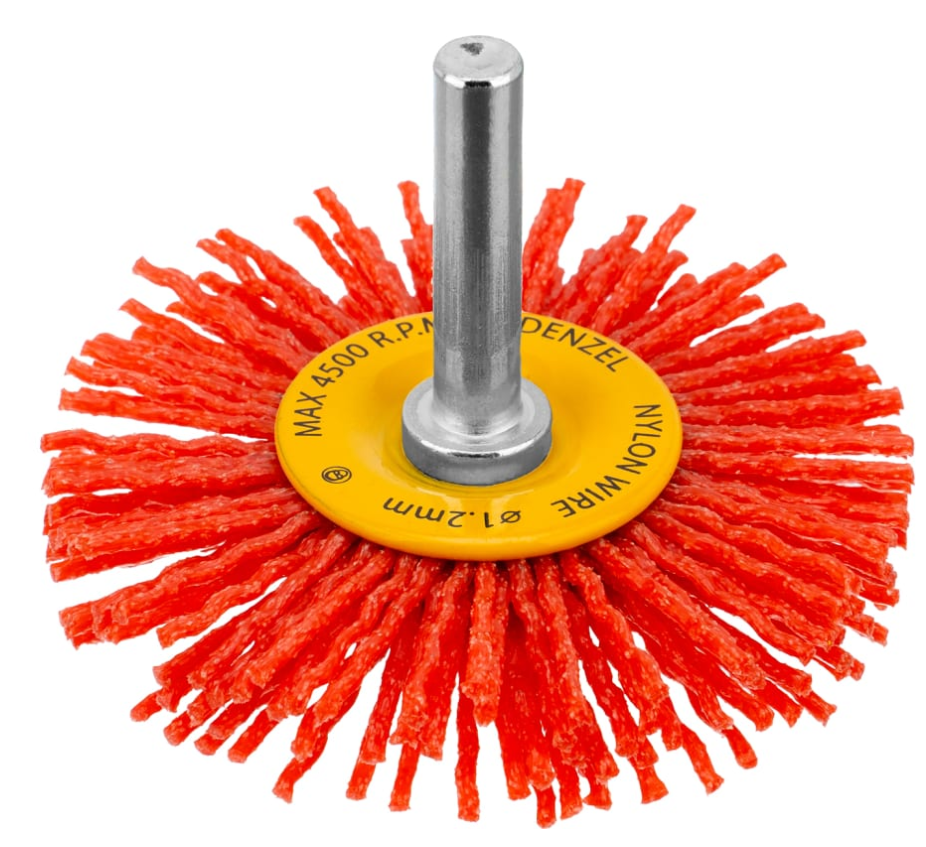 - Щетка для дрели, 65 мм, Плоская, со шпилькой, нейлоновая щетина// Denzel