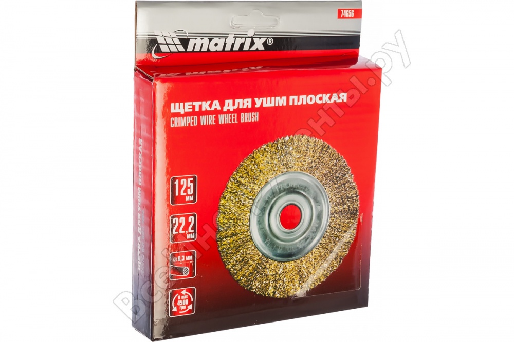- Щетка для УШМ, 125 мм, посадка 22,2 мм, плоская, латунированная витая проволока// Matrix