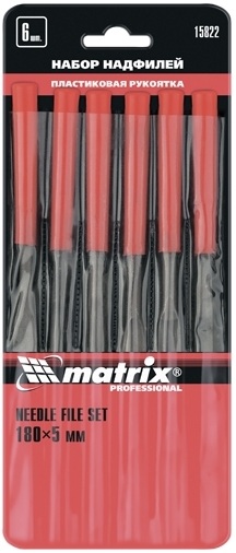 - Набор надфилей, 180 х 5мм, 6 шт., пластиковые рукоятки // MATRIX