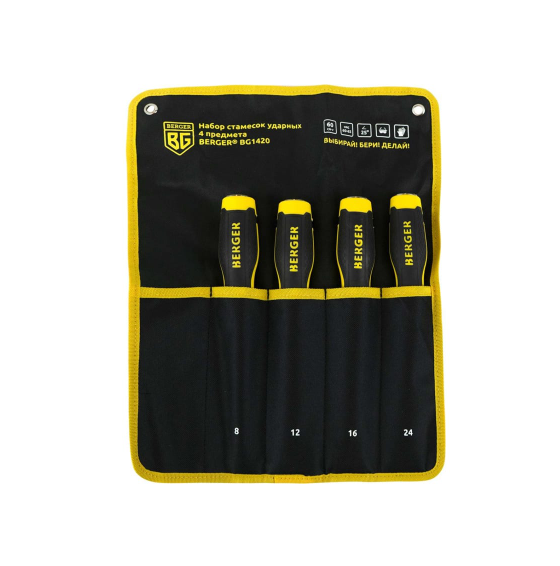 - Набор стамесок ударных 4 предмета (8, 12, 16, 24мм) BERGER BG1420