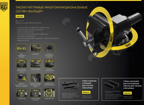 - Тиски чугунные многофункциональные "БАЛЬДР" 125мм BERGER BG1340
