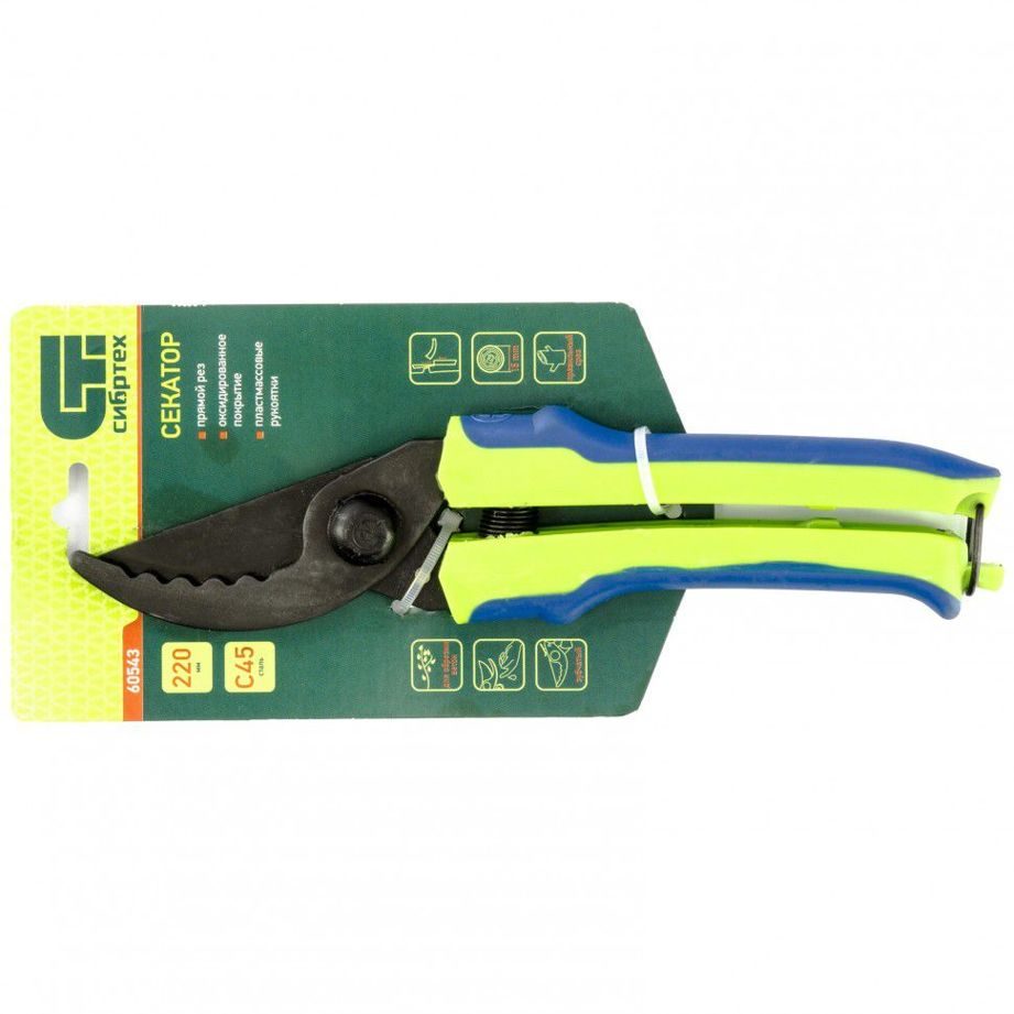 - Секатор, 220 мм, пружина возвратная, оксид. покрытие, пласт. ручки (Горизонт)//СИБРТЕХ Россия
