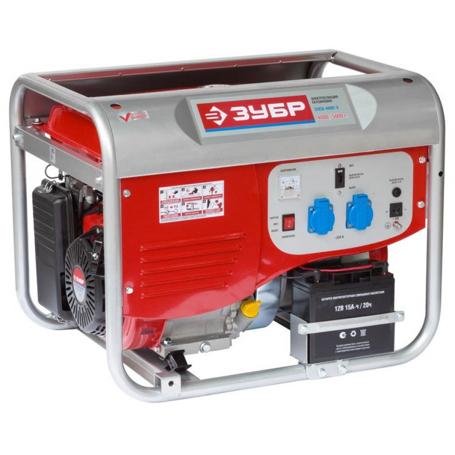 - Генератор бензиновый ЗУБР ЗЭСБ-5500-Э, 4-х тактный, ручной и электрический пуск, 5500/5000 Вт, 220/