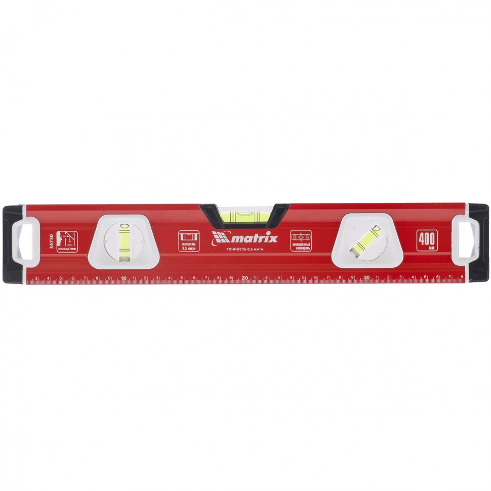 - Уровень алюминиевый, магнит., фрезерованный, 3 глазка (1 зеркал.), 400 мм// MATRIX
