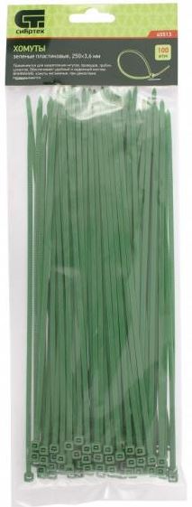 - Хомуты, 250 х 3,6 мм, пластиковые, зеленые, 100 шт.// Сибртех