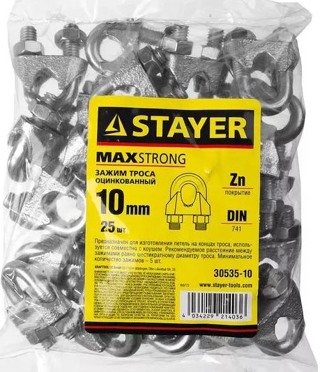 Зажим троса DIN 741, 10мм, 25 шт, оцинкованный, STAYER