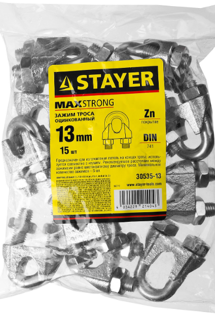 зажим троса din 741, 13мм, 15 шт, оцинкованный, stayer, купить metabo, купить husqvarna, купить bosch, купить makita, купить hitachi, купить hikoki, купить oregon, купить stihl 1 Благовещенск