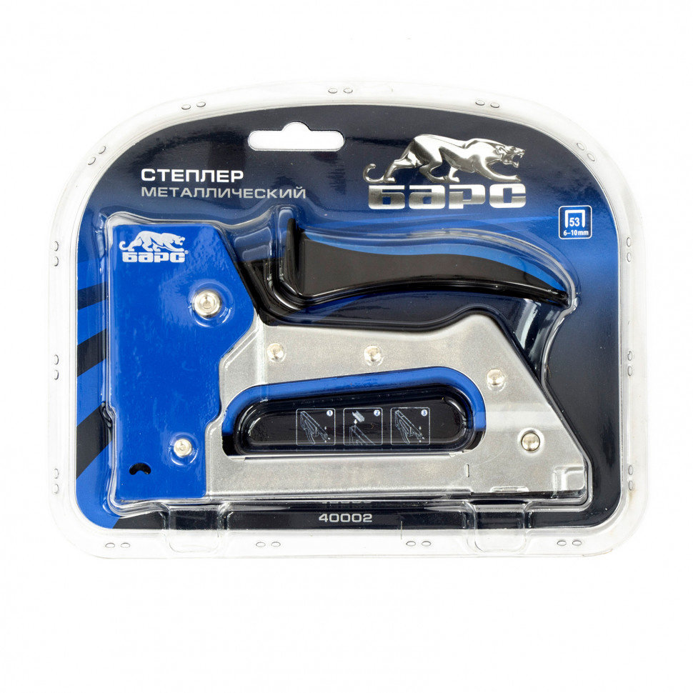 - Степлер металлический, двухкомпонентная рукоятка, тип скобы 53, 6-10мм// Барс